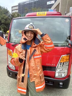 消防車の前で全員集合🚒!!