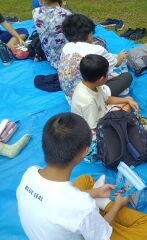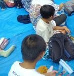 地震用トイレの説明を集中して、聞いていました!また、魚釣りゲ-ムをして、たくさん魚を釣っていました✨