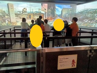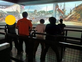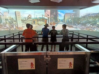 室内のスタンプを押した後、緊張しながらも地震体験をしました!