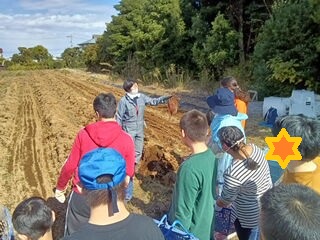 まずはスタッフから「どうやって掘るのか」「どうやってお芋が土の中にあるのか」のお話を聞きました👀