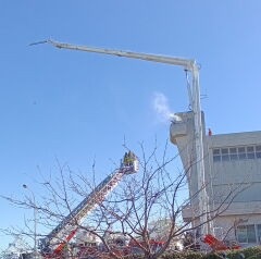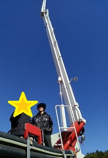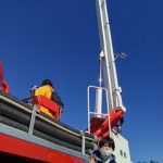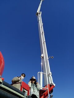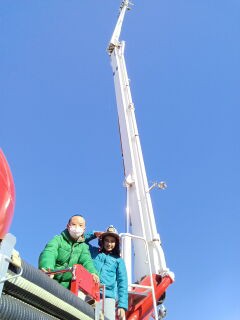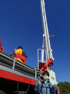 救助活動や放水訓練を見た後は消防はしご車の上に登りました🚒ポーズ!!とても良い経験です😆