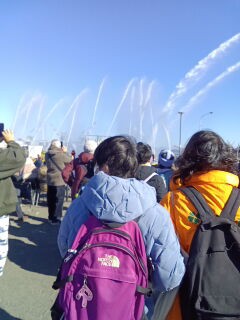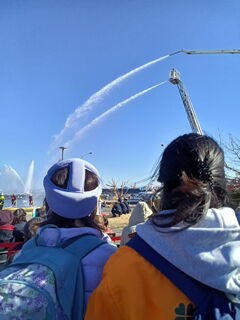 子ども達は放水が始まると、「すごい~!!!☺️」と嬉しそうに見ていました✨