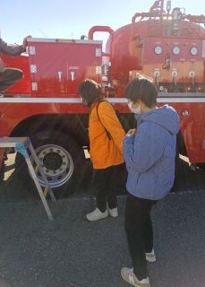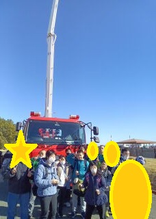 はしご車の前で集合写真も撮りました🌟にこにこ笑顔で楽しそうな表情をしてました🎵