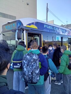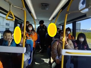 はしご車の後はバスに乗りました🚌みんなで座席に座って、体験しました☺️!