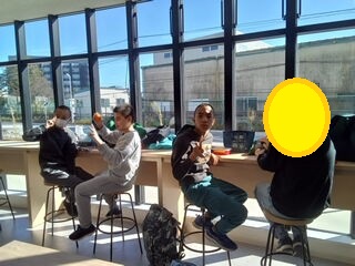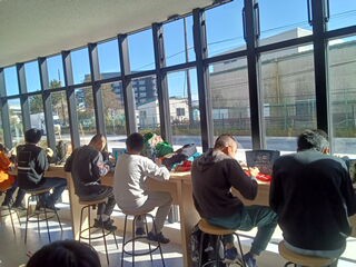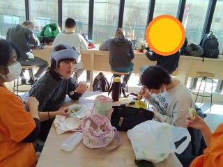 お昼休憩🎵コミュニティースペースで楽しそうにお話しながら、食べました😋