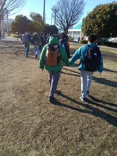 新杉田公園近くから歩き、消防出初式会場の杉田臨海緑地へ向かっています😆!