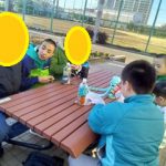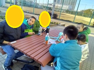 ベンチでおやつ✨今日も楽しい思い出いっぱいできたね~😆!!