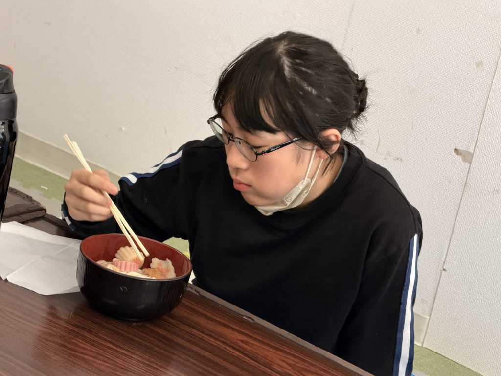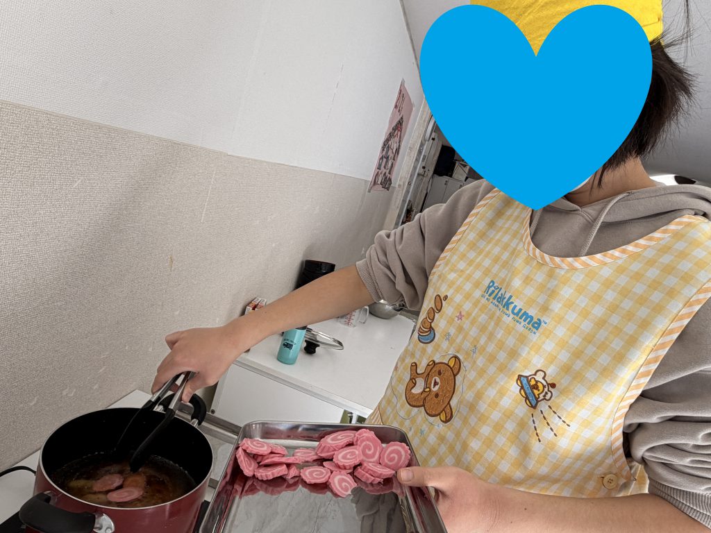 みんなで協力をして作ったおつゆ、具沢山なものを食べることがあまりないお友達もいて『なるとってこうやって食べるとおいしい!』と目を輝かせてくれたり普段あまり食べないお友達もおかわりしたりと楽しくたくさん食べることができました。