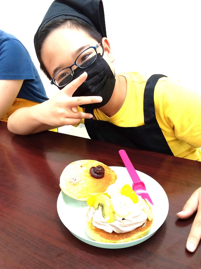 生クリームに好きなフルーツをのせてフルーツどら焼きの完成です!!盛り付け方もそれぞれ個性があり、食べるのがもったいなーい!という児童もいました😊