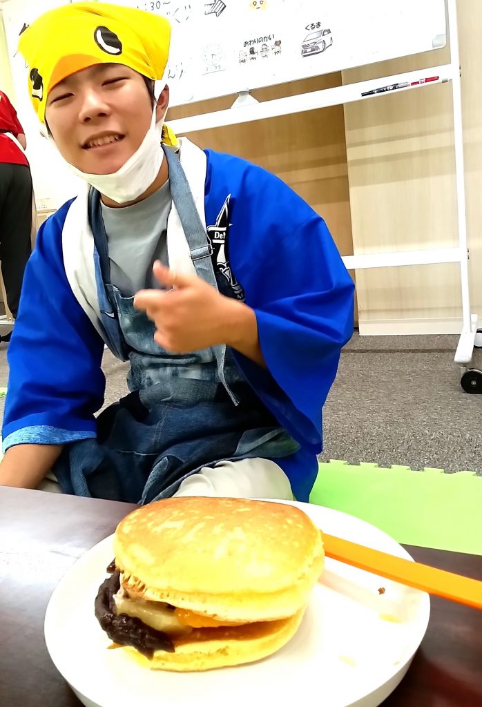 9月の祝日に手作りおやつ作りをしました。今回はフルーツどら焼きを作ることにしました。午前中、買い出し班数名にお願いして、材料の買い出しに出かけました。