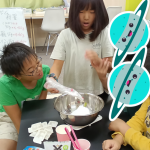 上手に出来たバスボムですが、乾かさなくてはいけないので、その日には持ち帰れなかったのが子ども達は残念がっていましたが、出来上がりを楽しみにしていました!後日お家に持ち帰ったので、お風呂で楽しんでもらえたのではないかなと思います。