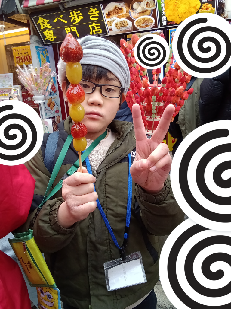 台湾ドーナツ、いちご杏仁、フルーツ飴、肉まん……自分で選んだメニューを購入し、おやつTime🎵