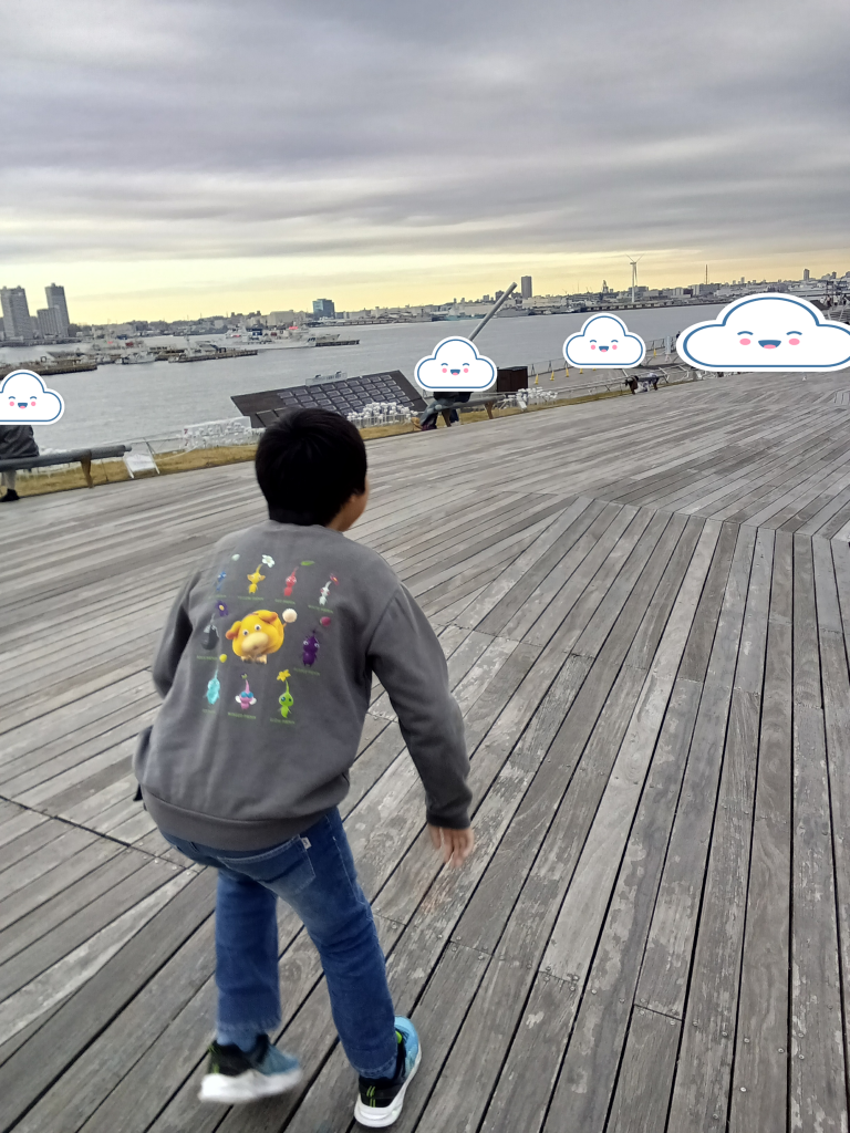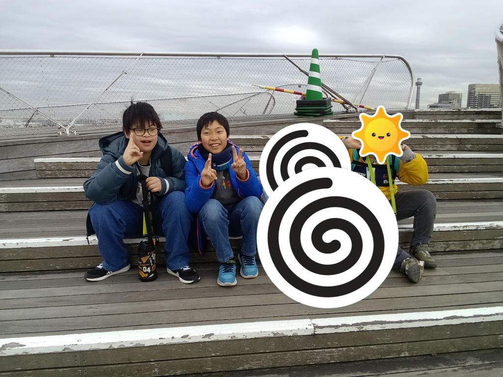 一年前の同じ時期にも大桟橋に来ています。子ども達もよく覚えていたようで、「前にも来たね!風が強い日で……」と思い出を語ってくれました😊