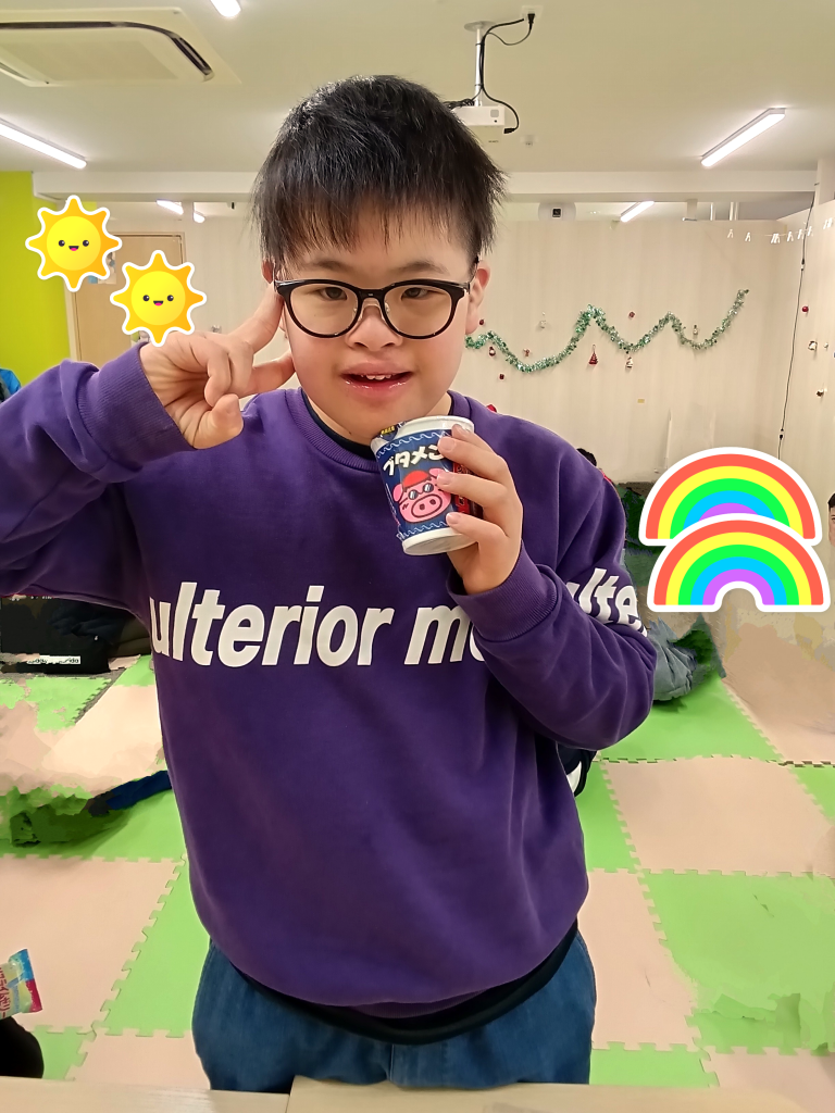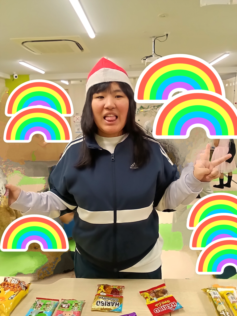 今年はいちばんおおきい高校生のお兄さんにサンタさん役に扮してもらい、クリスマスプレゼントのお菓子ブーツを配ってもらいました😊お手伝いありがとう😊✨