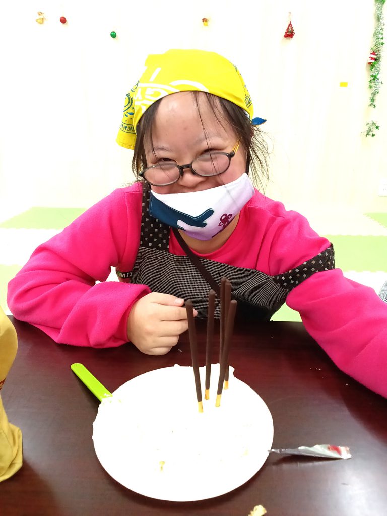 午後からは、毎年恒例のクリスマスケーキ作りをしました。
