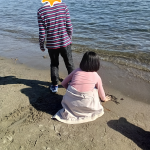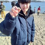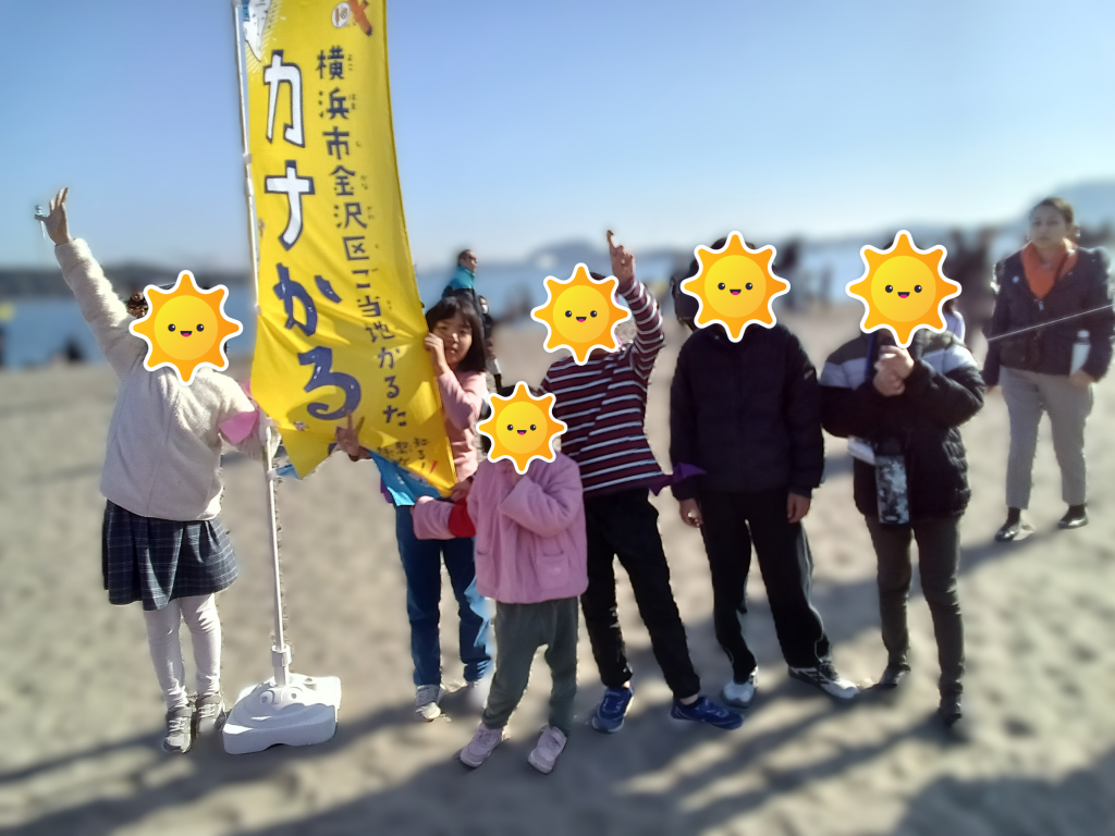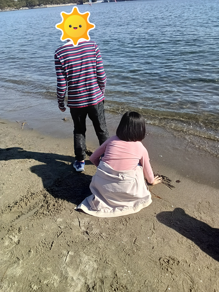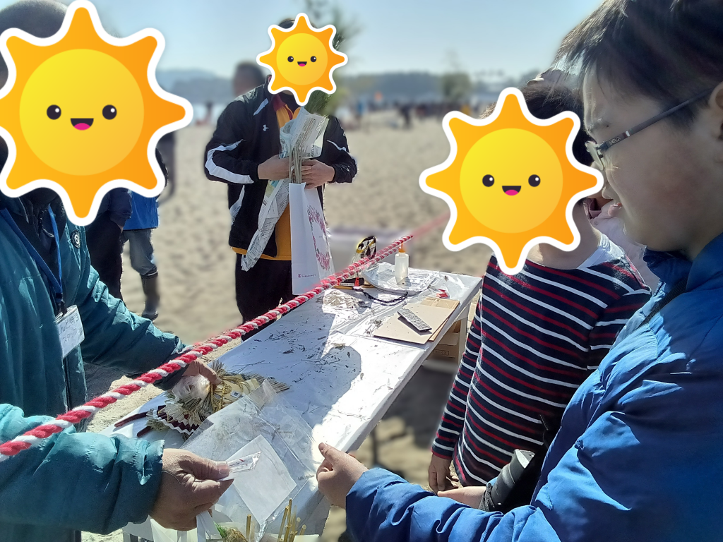 どんど焼きが始まるまでは波と遊んだり、貝を探したりして楽しみました。