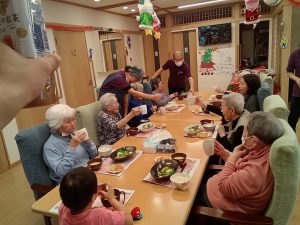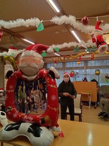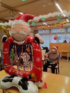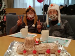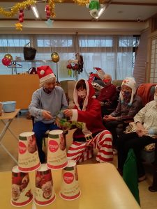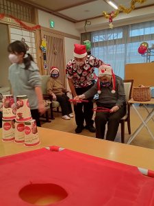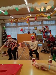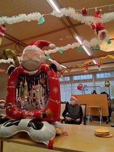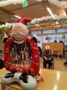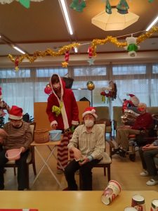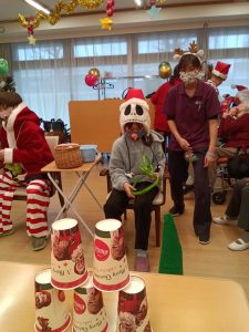 利用者様ともにスタッフもサンターやトナカイの仮装をしました。